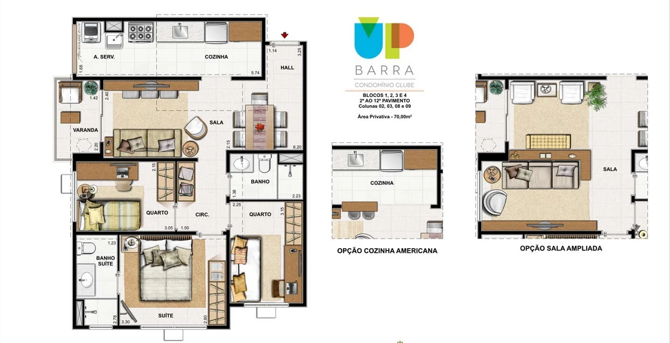 Apartamentos de 3 Quartos com 70m²,