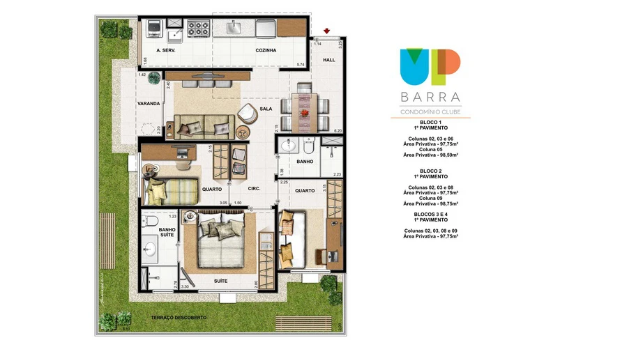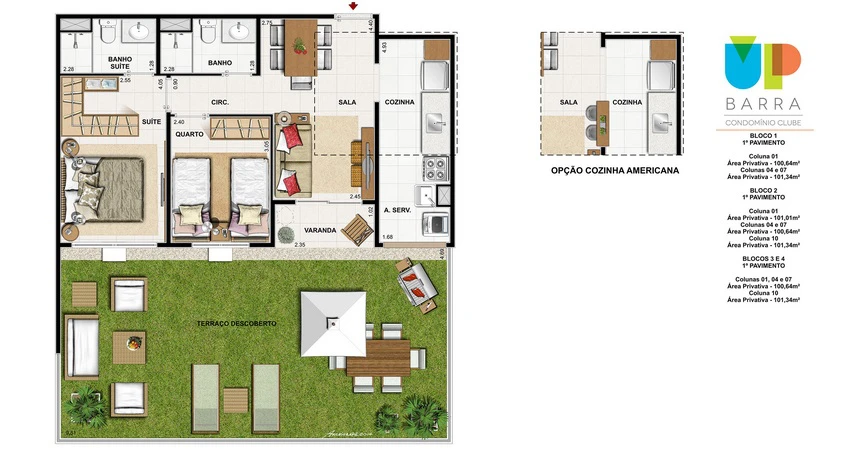 Apartamento Garden de 3 Quartos 98m² até 102m²;